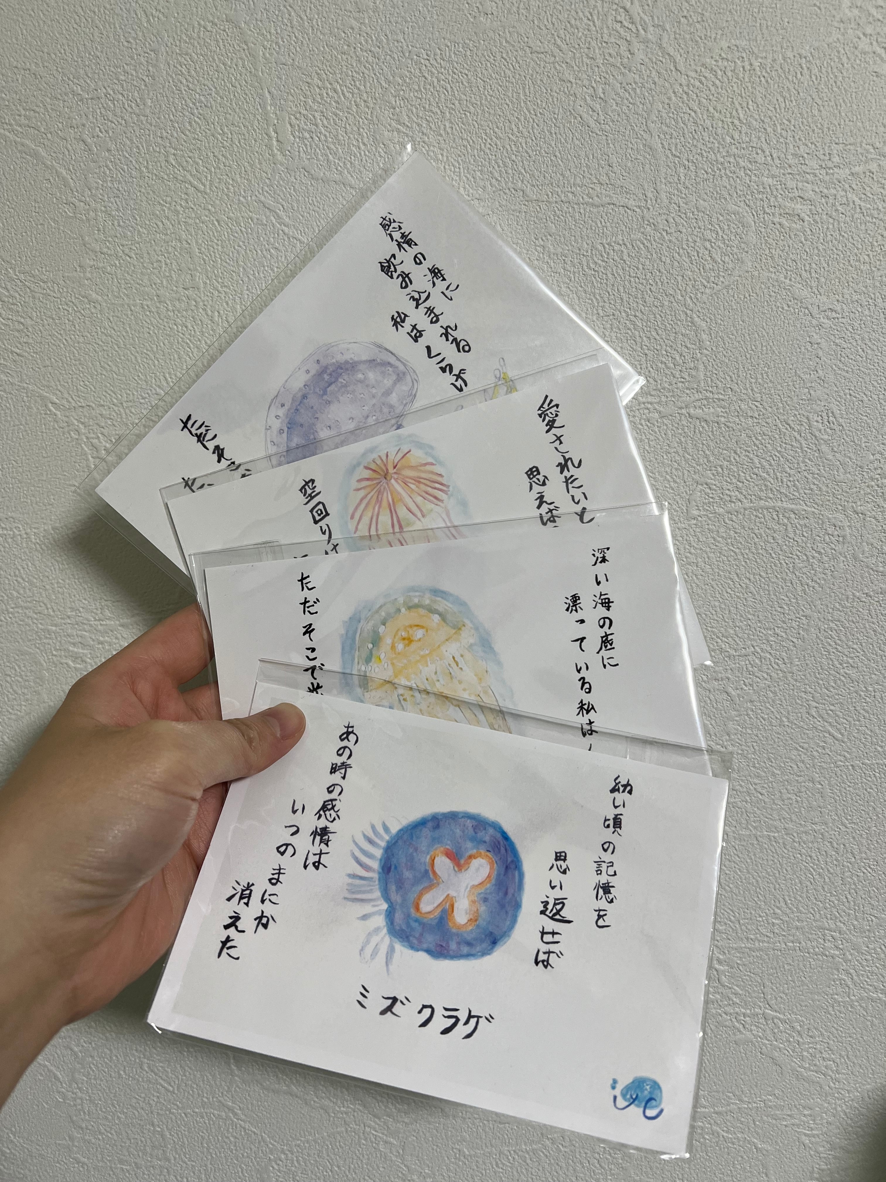 くらげ水彩画ポストカード7枚コンプリートセットです⭐︎✨